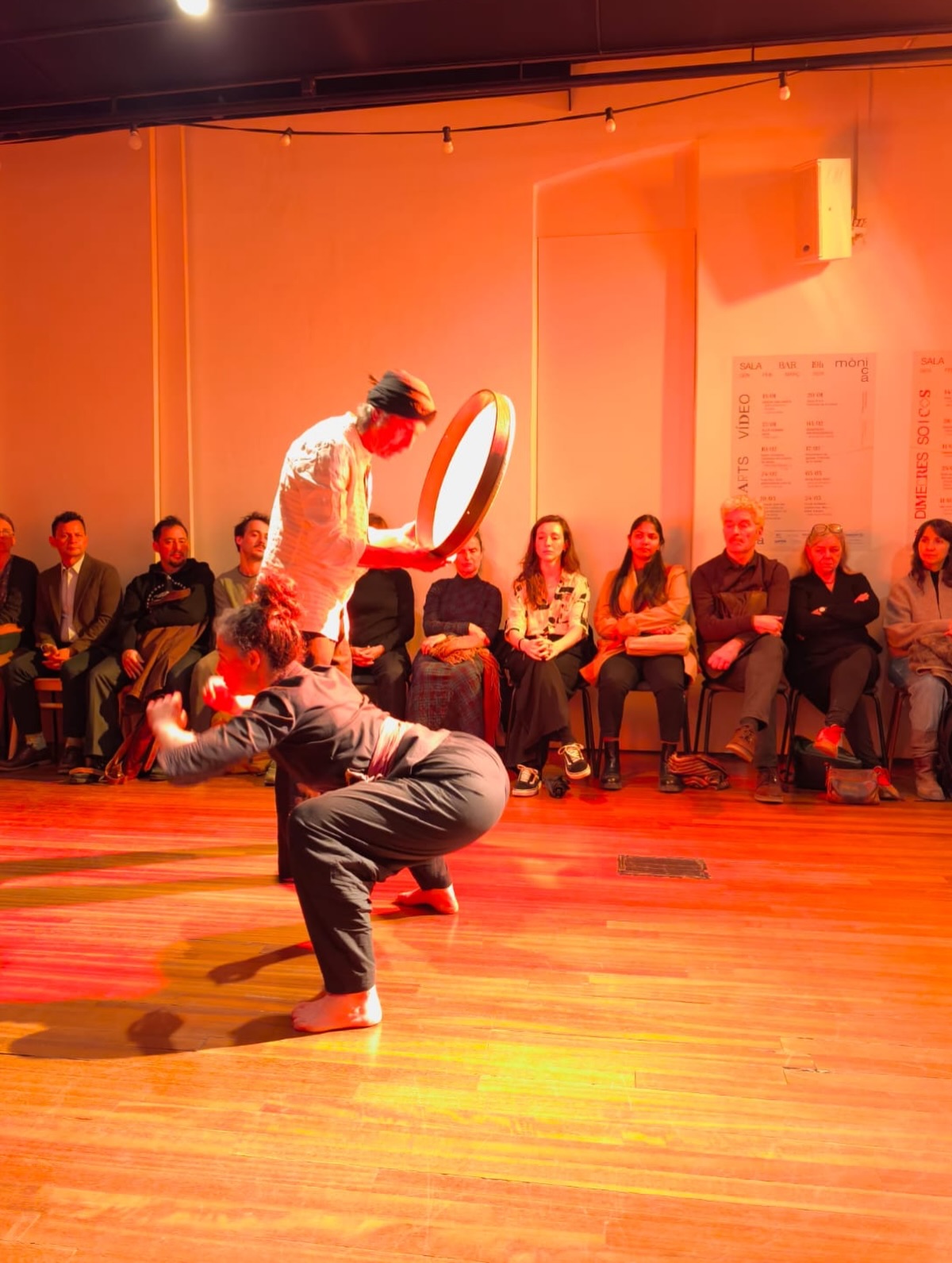 Un duet de “impro visió” que parteix del so de les tablas i del cos del kalaripayattu. Dues disciplines provinents de l’Índia que conflueixen en la trobada entre Jordi Rallo i Esther Freixa on s’obren a nous moviments, nous sons, noves impro visions.